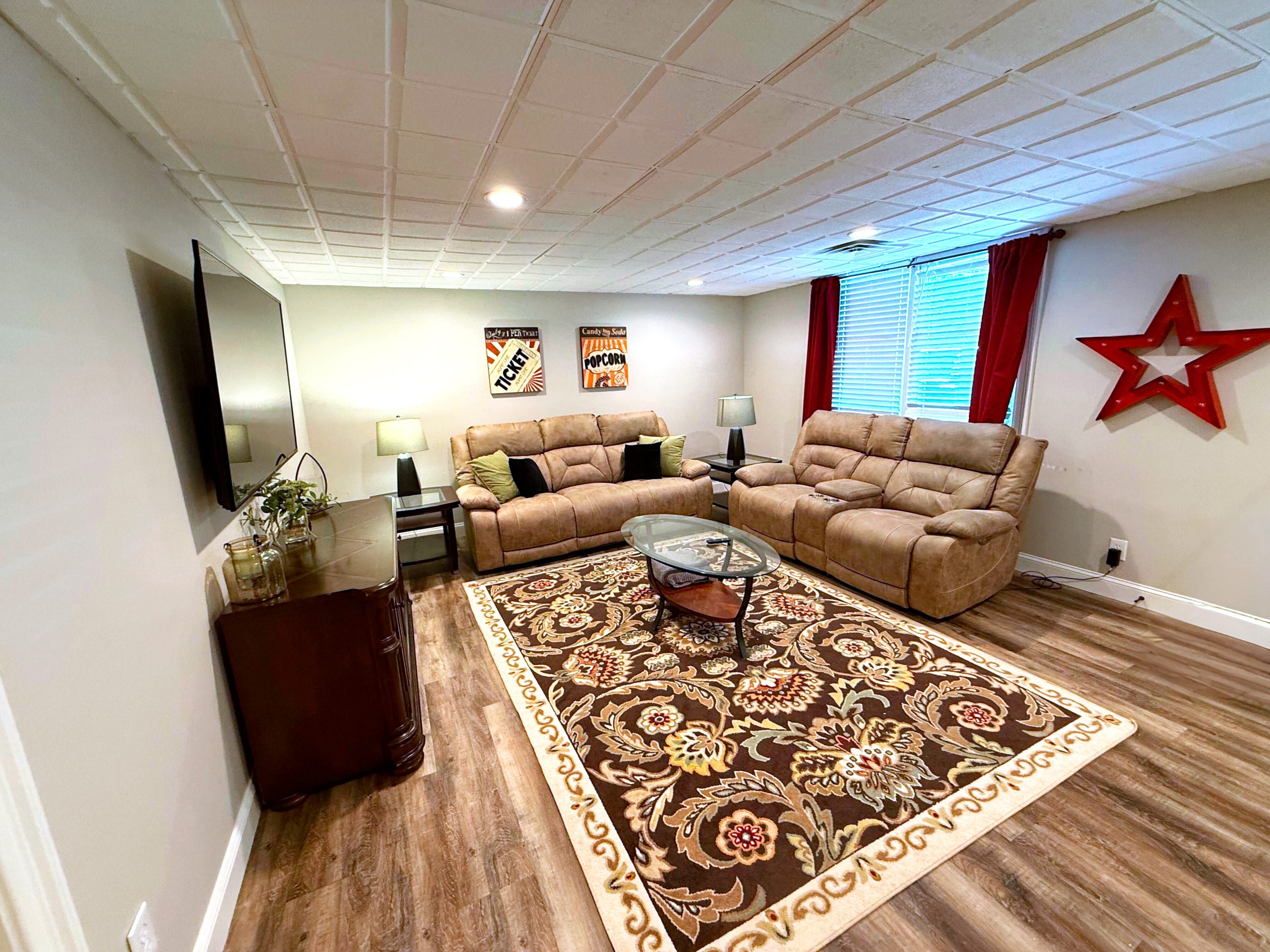 ๐ฌ Finished basement with private movie room, game room, gym, and bathroom